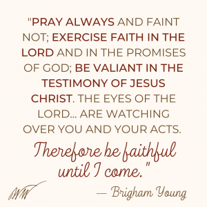 Pray always and faint not; exercise faith in the Lord and in the promises of God; be valiant in the testimony of Jesus Christ. The eyes of the Lord and the Heavenly Hosts are watching over you and your acts. Therefore be faithful until I come.”
