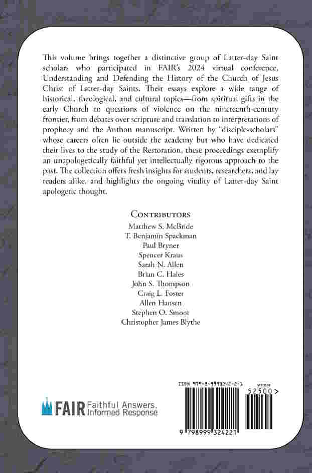 Proceedings from FAIR’s 2024 Understanding and Defending the History of the Church conference. Essays by Latter-day Saint scholars on scripture, history, theology, and culture. Coming October 2025.  Pre-order now to reserve your copy!