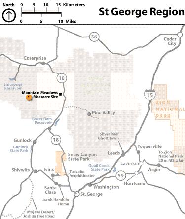 “On September 11, 1857, some 50 to 60 local militiamen in southern Utah, aided by some American indian[s], massacred about 120 emigrants who were traveling by wagon to California. The horrific crime, which spared only 17 children age six and under, occurred in a highland valley called the Mountain Meadows, roughly 35 miles southwest of Cedar City. The victims, most of them from Arkansas, were on their way to California with dreams of a bright future“ (Richard E. Turley Jr., ”The Mountain Meadows Massacre,“ Ensign, Sept. 2007).