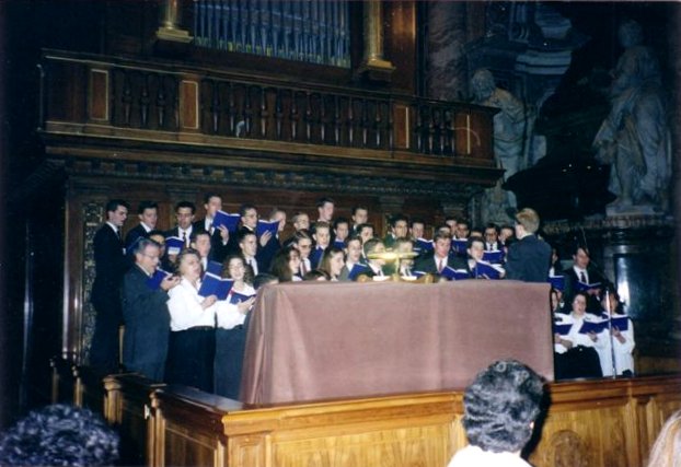 I am still amazed at what happened, however. On Sunday evening, Dec. 19, 1993, some 50 young LDS missionaries sang, in the Italian language, for Mass at St. Peter’s Basilica, not only for the numerous worshipers in the Basilica, but also over worldwide Vatican radio. Needless to say, those missionaries will never forget the night they sang for Christmas Mass in St. Peter’s Basilica. One of my prized possessions is a photograph of that experience.