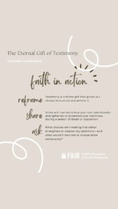 • Write down one experience that helped form your testimony and revisit it prayerfully.