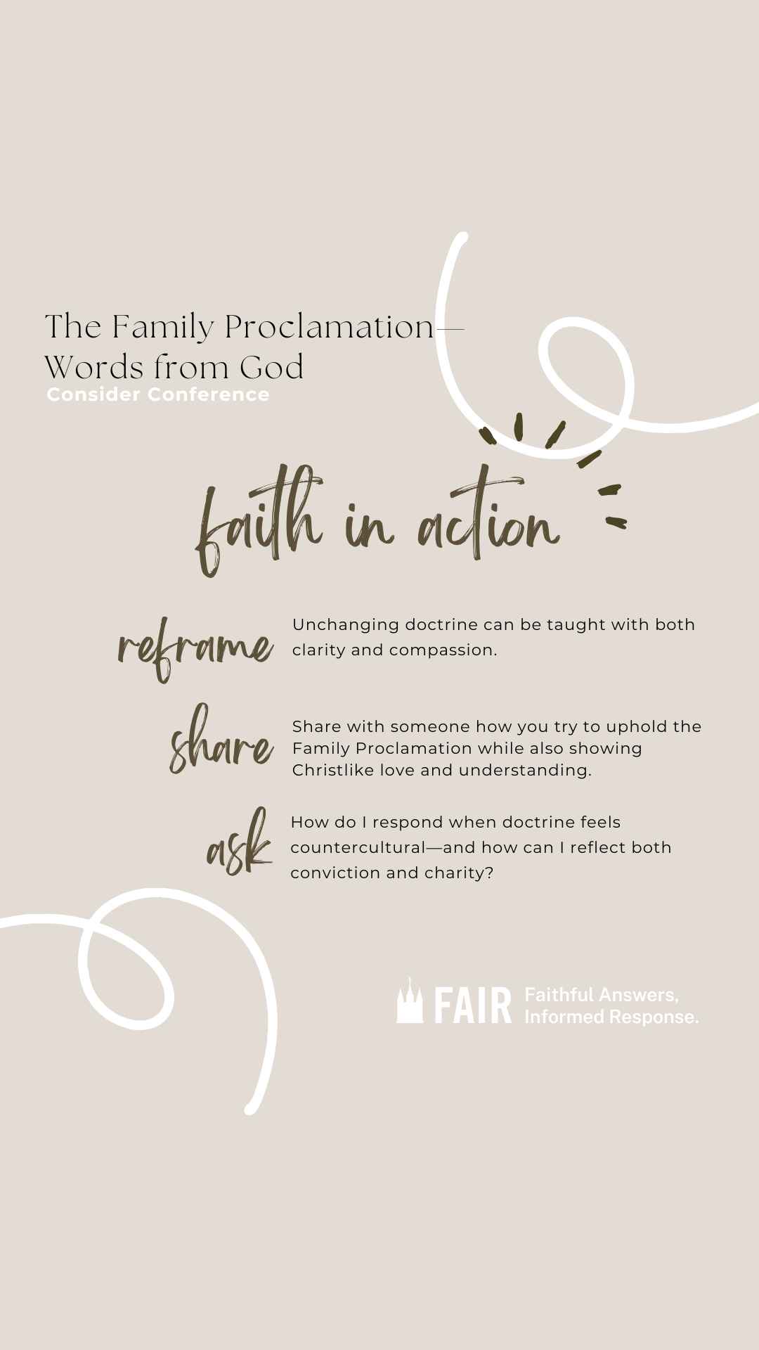 The Consider Conference series by FAIR offers an in-depth look at recent General Conference talks to help members of the Church of Jesus Christ of Latter-day Saints navigate common questions, misunderstandings, and criticisms. Each post provides doctrinal insights, historical context, and practical ways to apply gospel principles in everyday conversations. Through this series, we hope to equip readers with faith-promoting resources that encourage thoughtful reflection, respectful dialogue, and a stronger foundation in gospel truths, fostering both personal conviction and meaningful discussions with others.