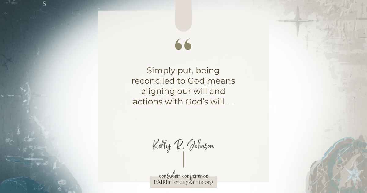 - You can respond: “Elder Johnson teaches that reconciliation begins by choosing to realign with God, made possible through Jesus Christ’s Atonement.”