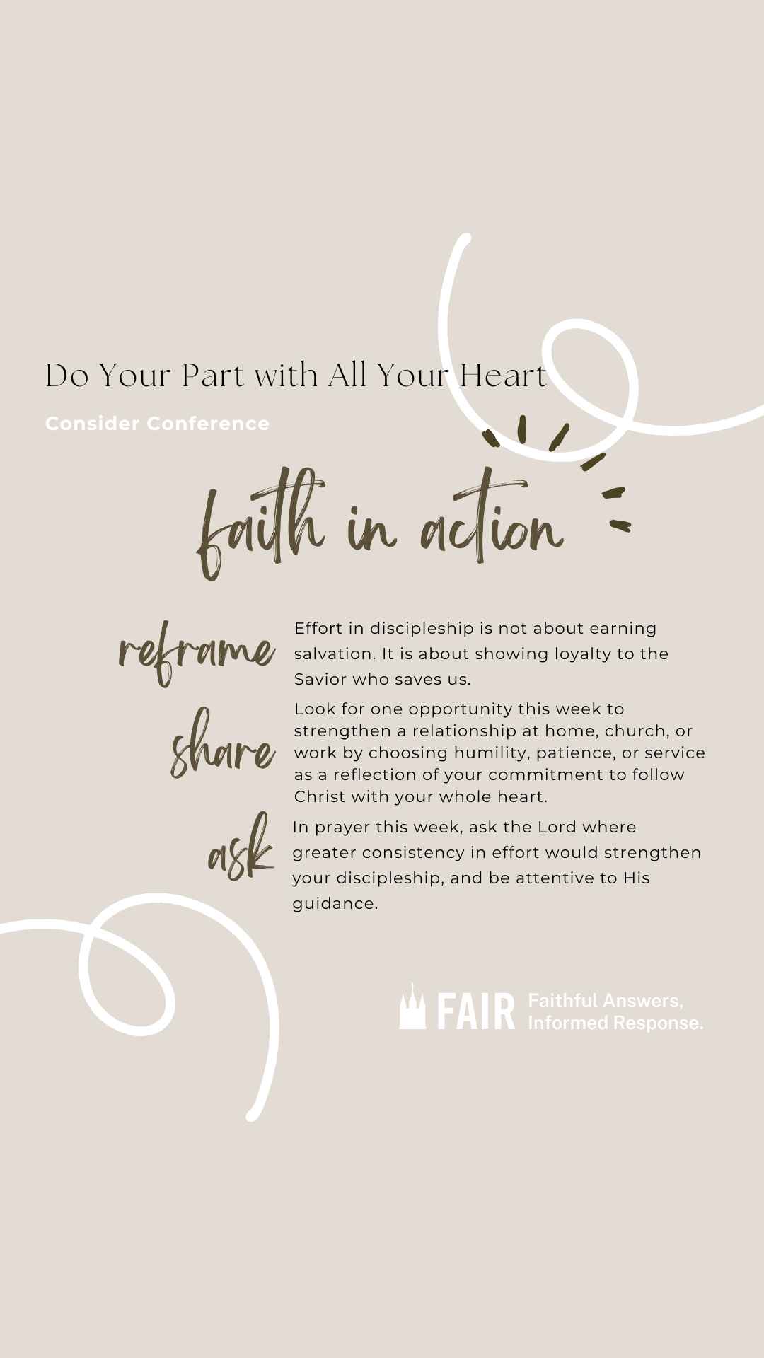The Consider Conference series by FAIR offers an in-depth look at recent General Conference talks to help members of the Church of Jesus Christ of Latter-day Saints navigate common questions, misunderstandings, and criticisms. Each post provides doctrinal insights, historical context, and practical ways to apply gospel principles in everyday conversations. Through this series, we hope to equip readers with faith-promoting resources that encourage thoughtful reflection, respectful dialogue, and a stronger foundation in gospel truths, fostering both personal conviction and meaningful discussions with others.