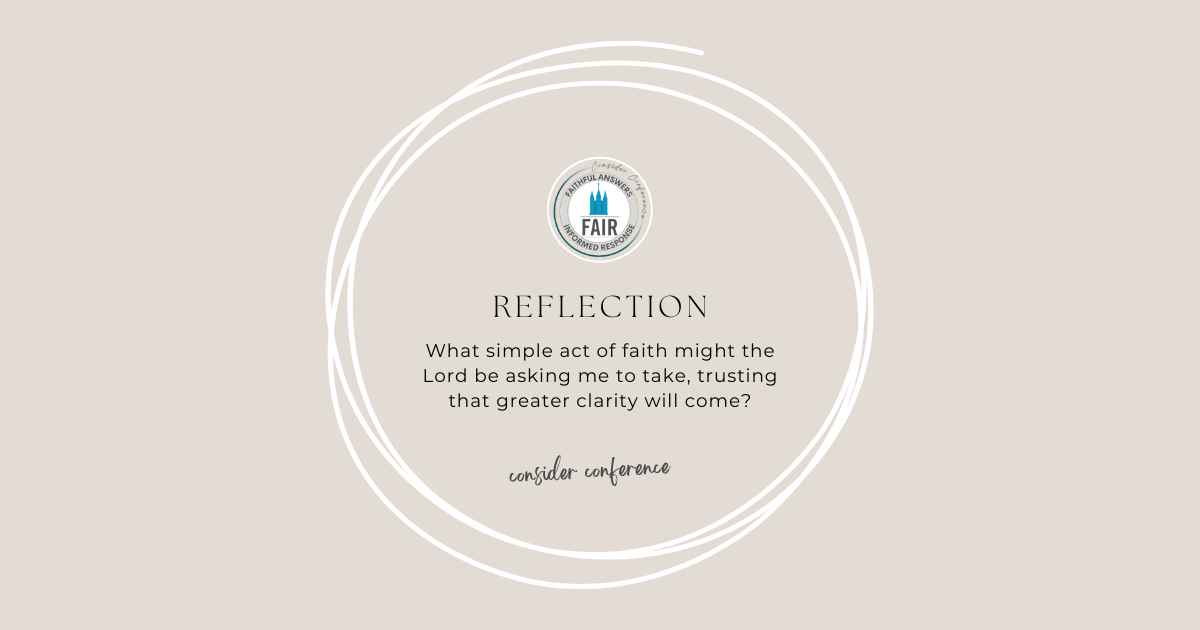 The Consider Conference series by FAIR offers an in-depth look at recent General Conference talks to help members of the Church of Jesus Christ of Latter-day Saints navigate common questions, misunderstandings, and criticisms. Each post provides doctrinal insights, historical context, and practical ways to apply gospel principles in everyday conversations. Through this series, we hope to equip readers with faith-promoting resources that encourage thoughtful reflection, respectful dialogue, and a stronger foundation in gospel truths, fostering both personal conviction and meaningful discussions with others.