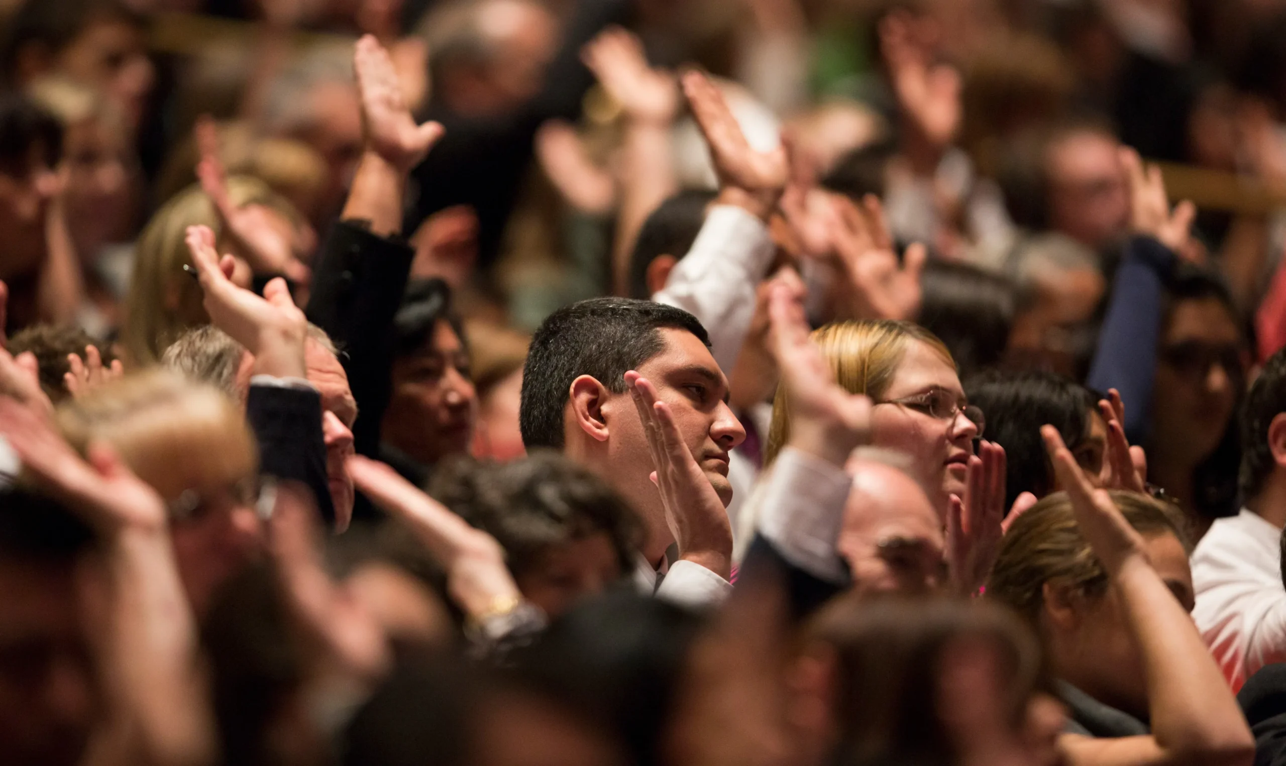 Normally during a general sustaining, Church members sustain the First Presidency and Quorum of the Twelve Apostles, as well as any releases and callings for general Church leaders that have been made over the previous six months. When voting on the proposals, the person conducting will present some names and call for a vote, with those in favor raising their hands and then any opposing indicating their dissent.