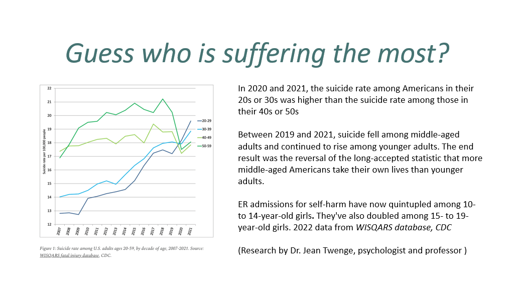 And guess who is suffering the most? I won’t go into a lot of the details here, but it’s the rising generation—young adults and children.