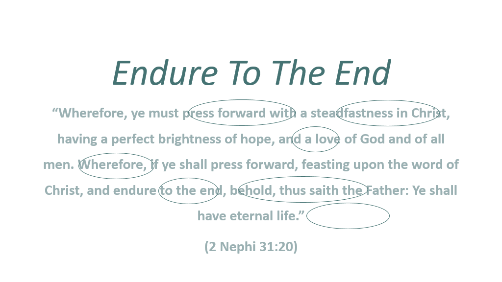 That’s how we have compassion—by loving all men. We want to feast on Christ’s words and then endure to the end.