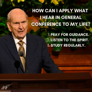 Sometimes after general conference we feel very overwhelmed. But as we pray for guidance, listen to promptings from the Spirit, and study regularly, we can receive guidance on how to apply the messages into our daily lives and ultimately become closer to our Savior, Jesus Christ.