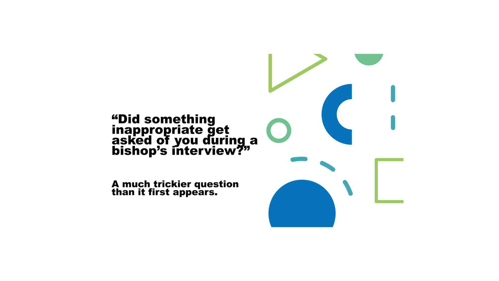 So, a common battle cry that you will hear in discussions from people who are against these bishop interviews is that they really act as grooming. And grooming is a process through which an adult readies a teenager to receive sexual abuse. But intent is required. Grooming is not any conversation about sex, it has to have an underlying intent to move toward abuse. Just asking a teenager about sexuality is not grooming. If it were, every time a parent or a therapist or a medical doctor has a conversation with a teenager about sex, it would be grooming, and clearly, it is not.