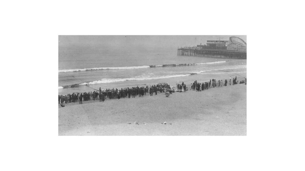 And then one day, Amy disappears. This is May 18, 1926. This is a picture of May 18, 1926, the day it’s Ocean Park Beach in Southern California, you might know it better as Venice Beach. You can see in the background that’s the Santa Monica Pier; it had been built ten years earlier. And so what happens is Amy goes to the beach, and a few hours later, nobody can find her. And her friends search for her and can’t find her.