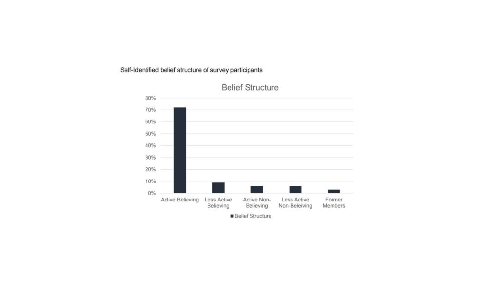 Well, 70% of them call themselves active believing members. They were not given a definition of what that means, and the assumption was the categories were self-explanatory. About 9.5 percent are less active believing, 8.5 percent are active non-believing, about 7 percent are less active non-believing, and 5 percent were former members. That’s sort of how that breaks down.