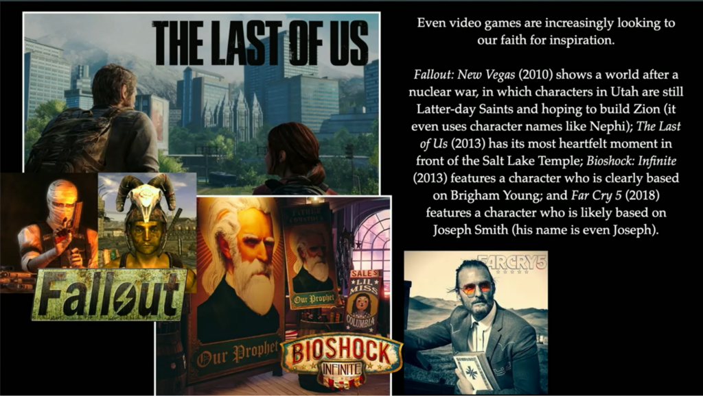 The Expanse is one of the most popular Sci-Fi shows on Amazon Prime, the LDS Nauvoo is a starship intended to transport Latter-day Saints to a new planet, emphasizing their desire for autonomy. I believe the starship gets taken away from them, but they are just depicted as this powerful group that is just trying to do their own thing. And of course, Battlestar Galactica, penned originally by a member, has lots of lore and cosmology from our own background and ideas about the planets and their rotation and things like that, as well as a quorum of the twelve, and all these references.