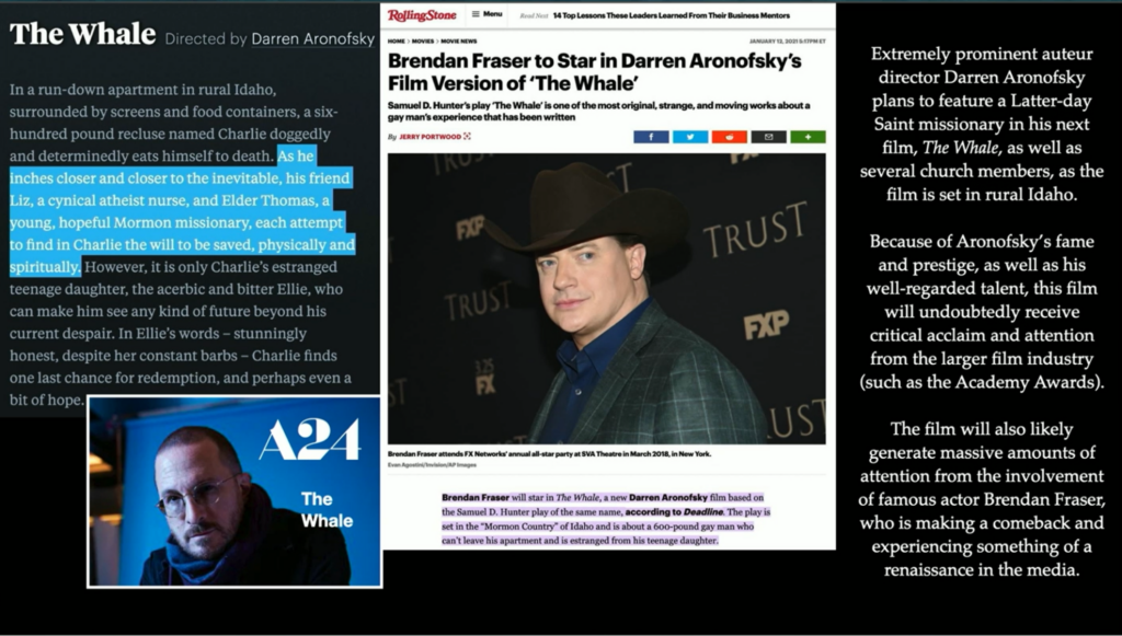 In 2017, I wrote an essay and published some research that served as a sort of manifesto on the marketability of Latter-day Saint ideas, concept, doctrine and culture in cinema. It was published as part of a book titled “Mormonism in the Movies.” It predicted an increasing trend, year over year,  of exploring Mormonism in media, encompassing not just our church but also fundamentalism, break-offs from the Church, and historical aspects.