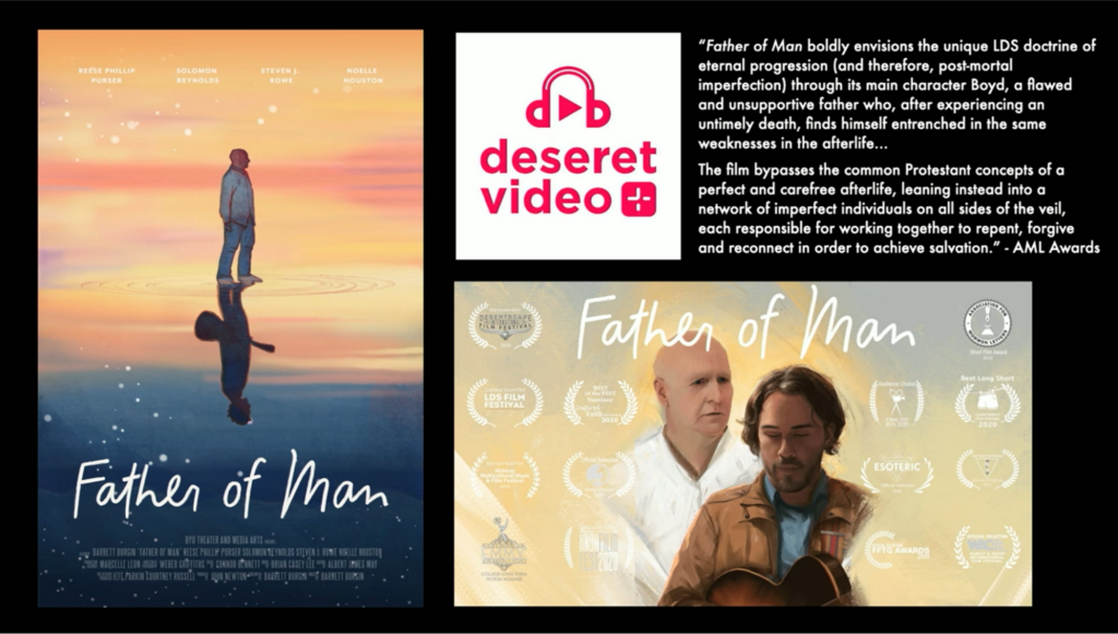 A few years later, I made another film with BYU, my capstone short film called Father of Man. It’s aimed more toward a Latter-day Saint audience and is available, or will soon be available on Deseret Video for streaming. While targeting a specific audience, I aimed to make it as accessible and universal as possible, exploring Latter-day Saint ideas, iconography, doctrines, concepts, etc.