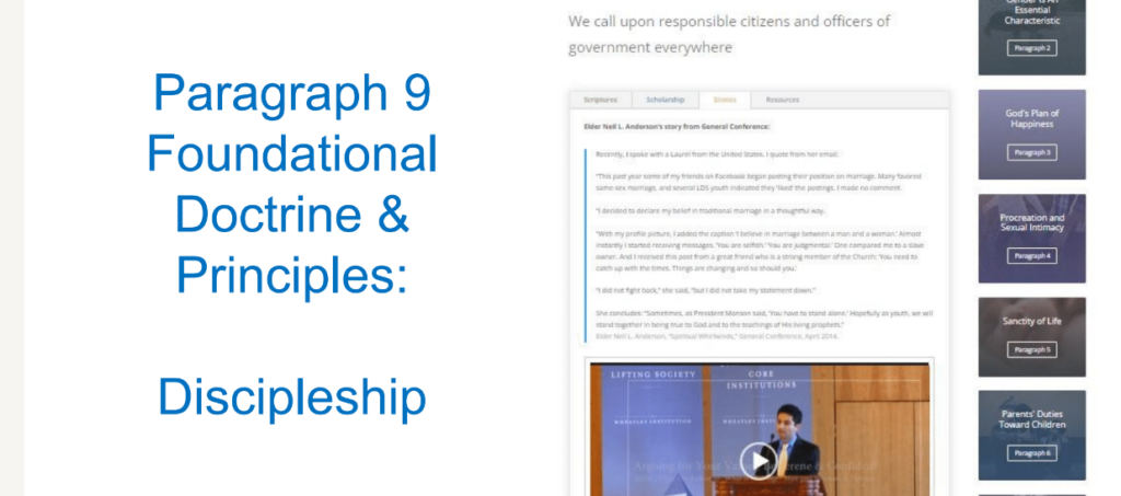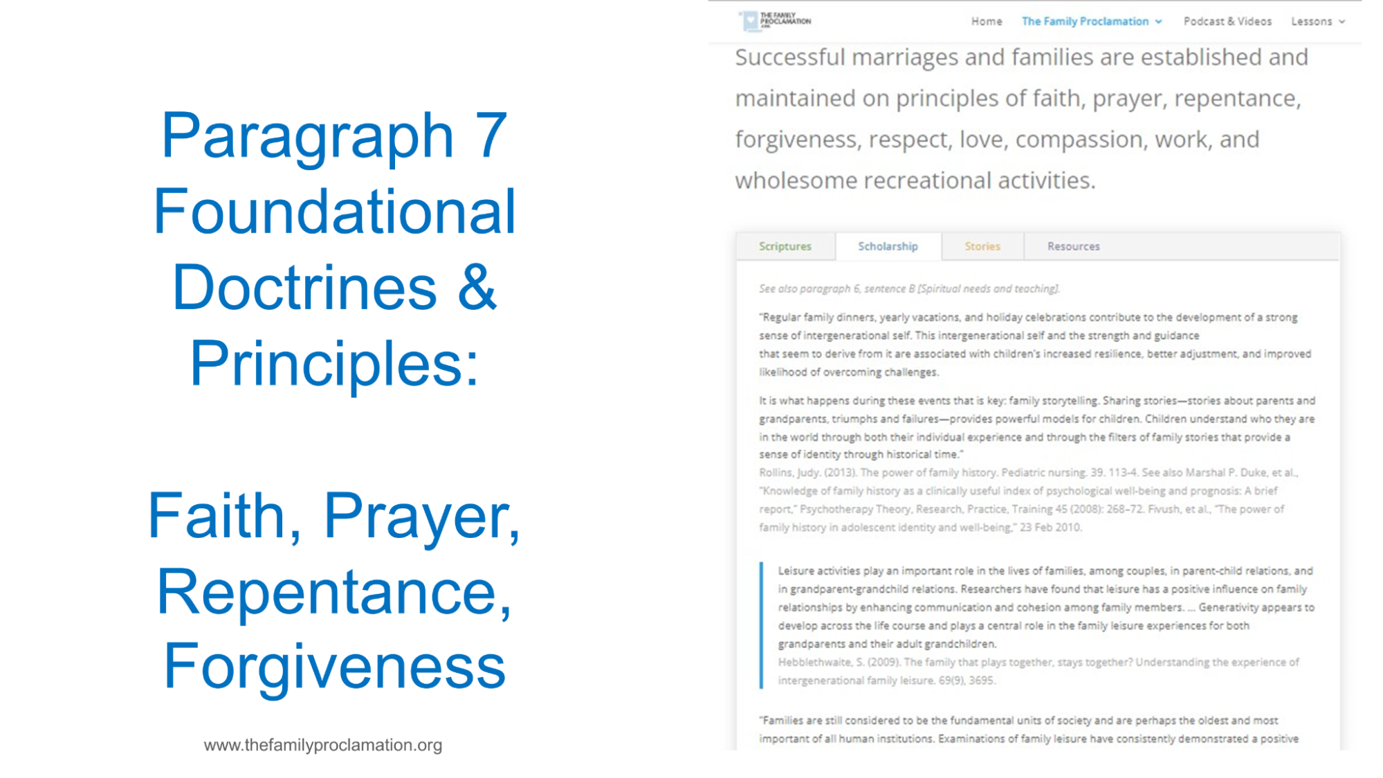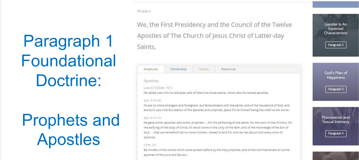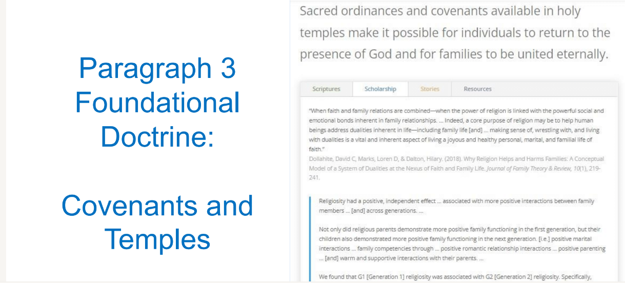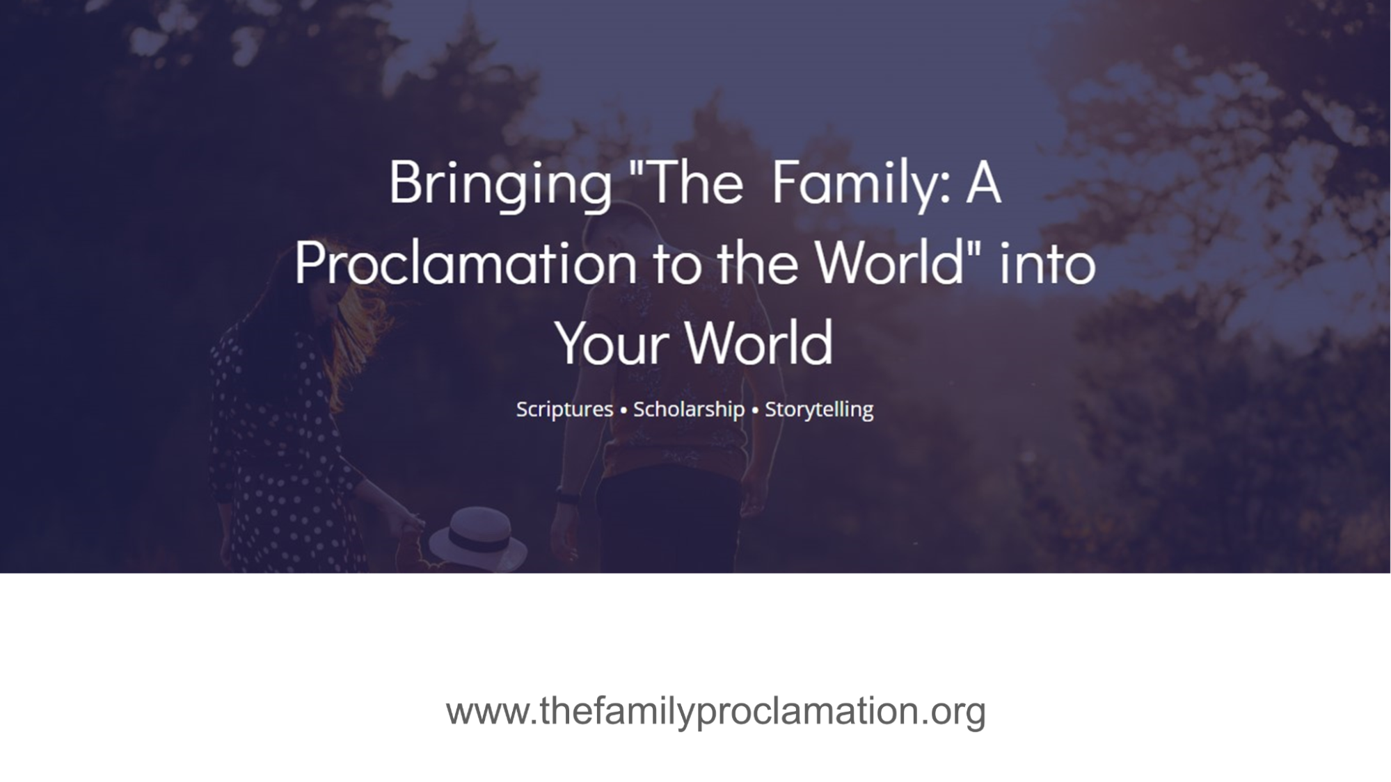 In this slide, one of the things I hope you can see here is that one of the features of the familyproclamation.org website is that it combines scripture scholarship and then stories, personal experiences about the principles of the family proclamation.
