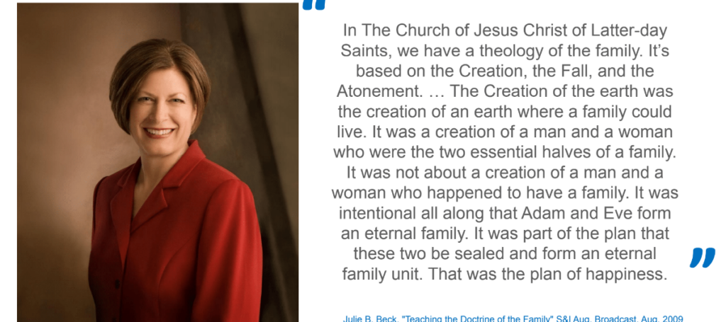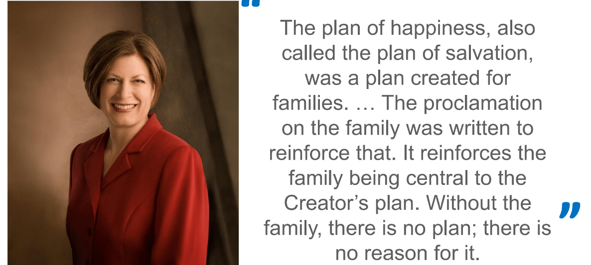 Sister Beck gave a wonderful talk. If you’ve never read this talk that she gave back in 2009, former Church General Relief Society President on the importance of the doctrine of the family, I really strongly encourage you to.