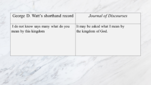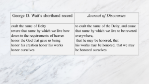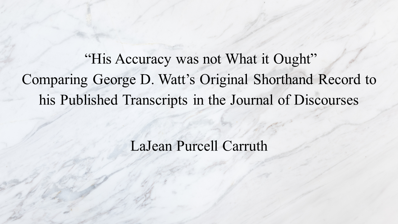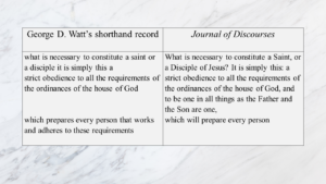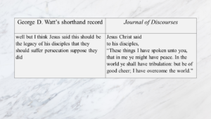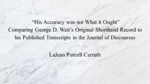 BYU Studies article: Gerrit Dirkmaat and LaJean Purcell Carruth, “The Prophets Have Spoken, but What Did They Say? Examining the Differences between George D. Watt’s Original Shorthand Notes and the Sermons Published in the Journal of Discourses,” BYU Studies 54:4.