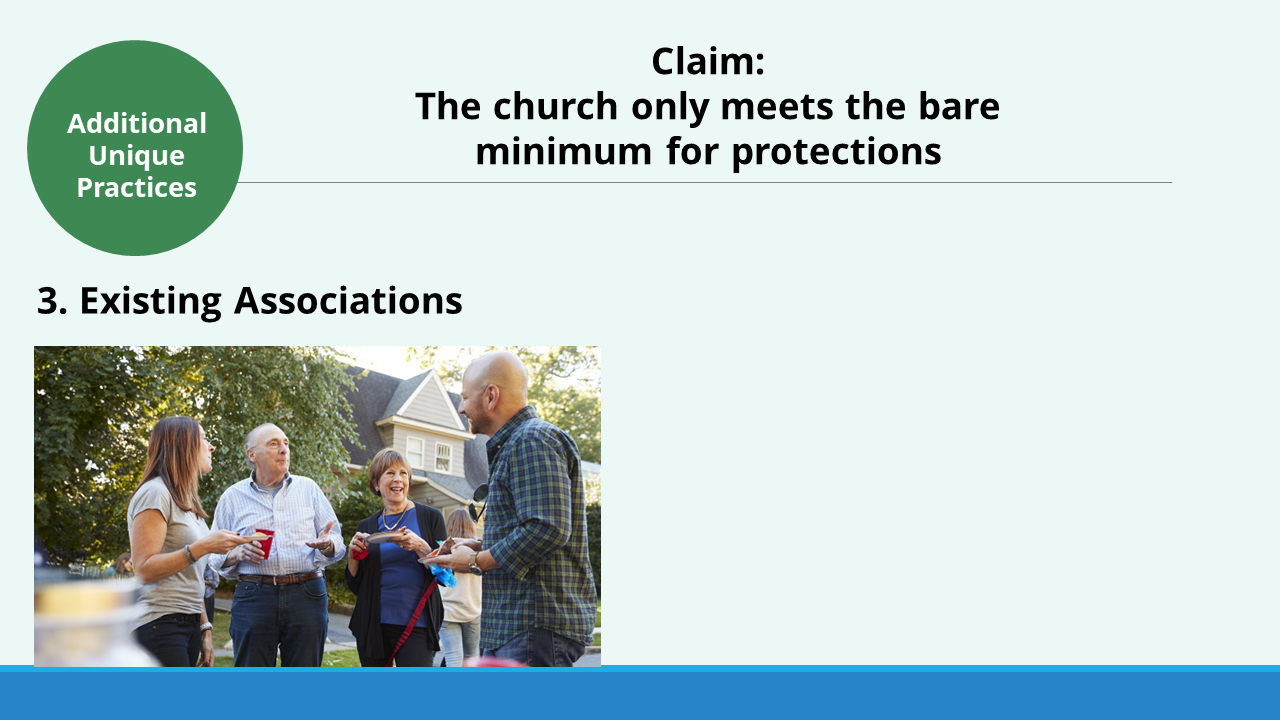 Existing associations. This has to do with the fact that our wards are organized by boundaries. Now, this works way better in a place here like in Utah. My ward is all high-density housing and my entire ward fits in three blocks. I can see the building everyone lives in from my window, right? In lots of places, I know that a ward boundary — you have to drive three hours to get across it. So, this doesn’t work everywhere. However, in other churches, people can drive as far as they want to go to church. You want to drive an hour away from where you live? Where no one knows you? Where there are no parents that you’ve ever made feel uncomfortable for how you are around their children? You can do it. And then when things go bad at that one, you just go to another one — and no one will ever know. You get a clean slate every single time.