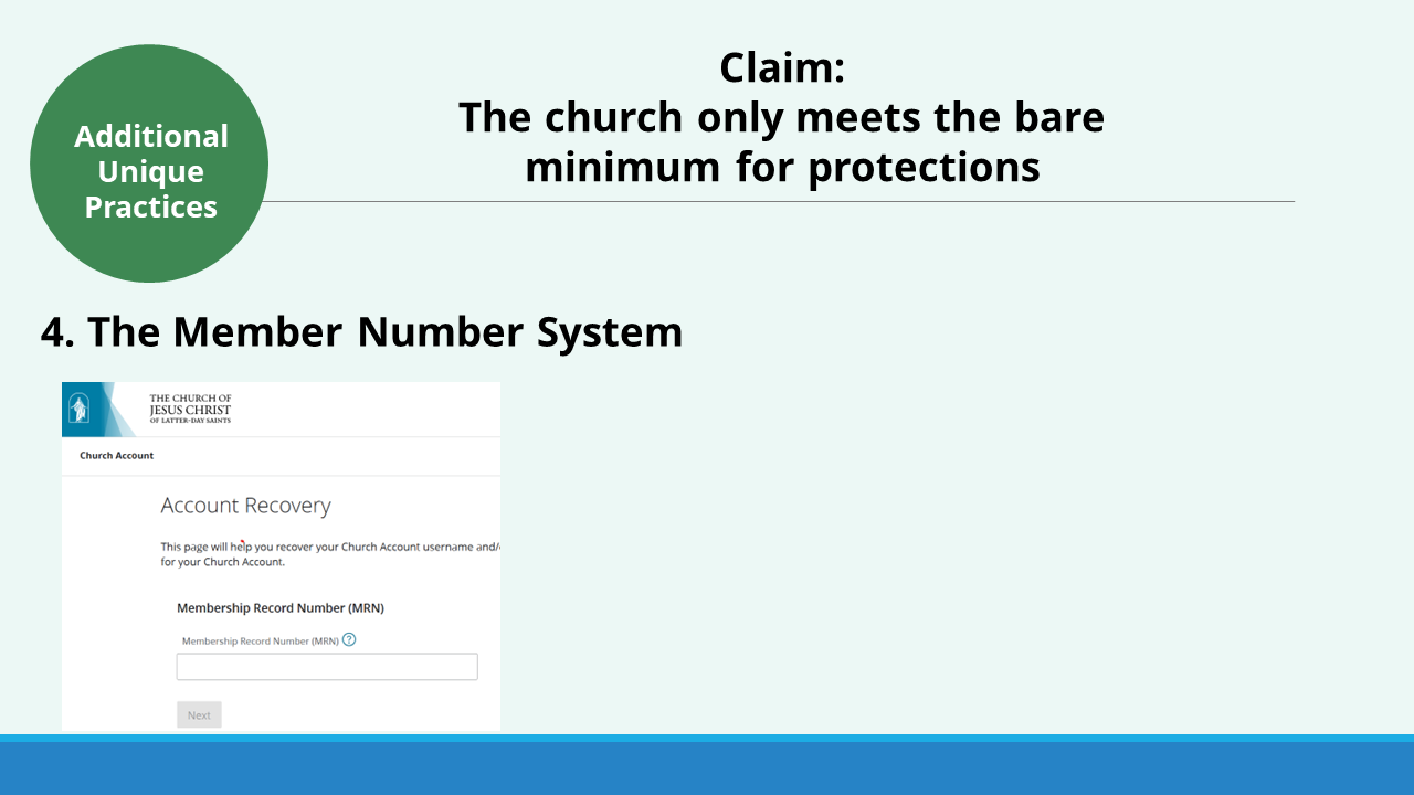The member number system — this naturally leads right into this– bishops can make an annotation by persons member number that follows them. If this person decides, “I’m going to leave overly populated LDS Utah and go move somewhere else in the world,” that number moves with them — including an annotation that their bishop may have made on their record about their behavior, or accusations or convictions around children — to alert the leaders who are going to receive them in their new Ward.