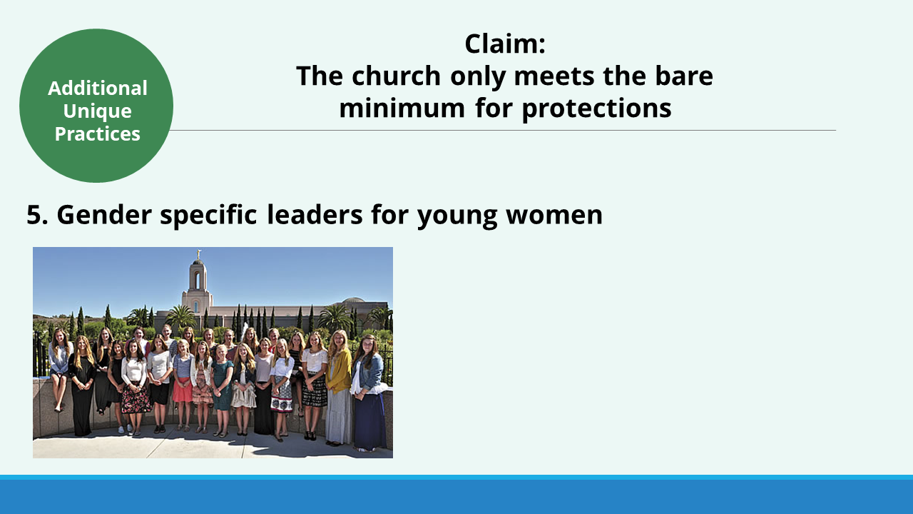 I’ll just spend a second on this. We have gender specific leaders for young women. A lot of places this does not happen. I’m sorry, but men commit more abuse than women do. Teenage girls are abused more frequently than teenage boys are. Our girls are safer having assigned leaders looking out for them.