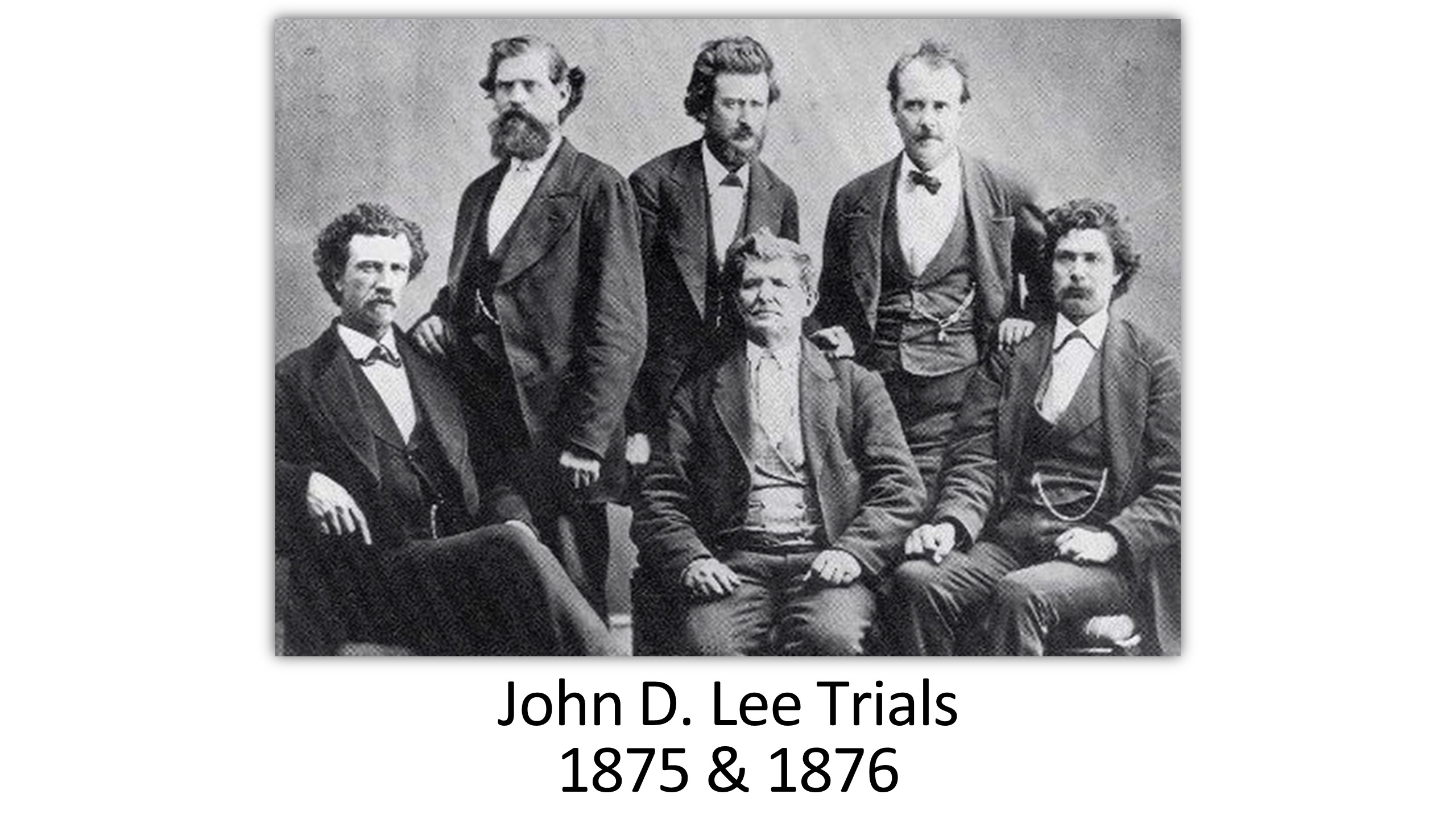 This is Lee and his attorneys in the first trial. But as I began to look at this, my book compares the relationship of the trials and the official prosecution for John D. Lee and its relationship with the popular narrative that continues to spin about Mountain Meadows.