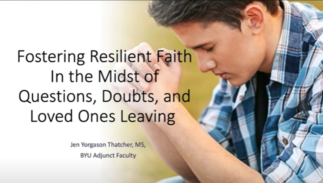 Scott Gordon: Our next speaker is Jen Yorgason Thatcher. She’s an adjunct faculty member in the BYU Religion Department and the School of Family Life, where she teaches The Eternal Family. She received her master’s in the BYU School of Family Life, with a research emphasis on families and religion. She is a wife and a mother, and with that, we’ll turn the time over to Jen Yorgason Thatcher.