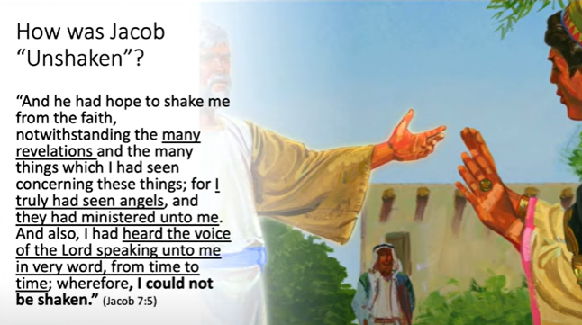 He goes to Jacob. Now, notice the pattern. Notice why Jacob could not be shaken. Sherem had “hoped to shake me from the faith, notwithstanding the many revelations and the many things which I had seen concerning these things; for I truly had seen angels, and they had ministered unto me. And also, I had heard the voice of the Lord speaking unto me in very word from time to time; wherefore, I could not be shaken.”