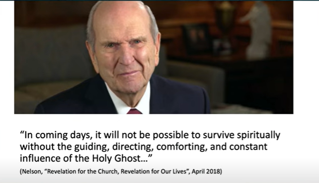 President Nelson has said, “In coming days, it will not be possible to survive spiritually without the guiding, directing, comforting, and constant influence of the Holy Ghost.” That’s what we need.