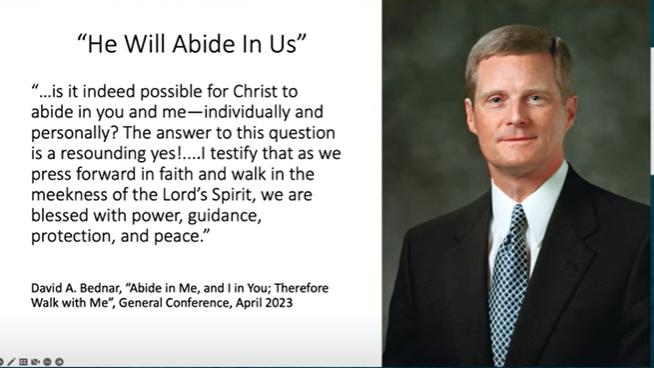 Elder Bednar has taught—I loved his talk, I loved what he shared. He said, “Is it indeed possible for Christ to abide in you and me individually and personally? The answer to this question is a resounding yes. I testify that as we press forward in faith and walk in the meekness of the Lord’s Spirit, we are blessed with power, guidance, protection, and peace.” He can abide in us, and we in Him. We can be close to Him all day long through the constant companionship of the Holy Ghost.