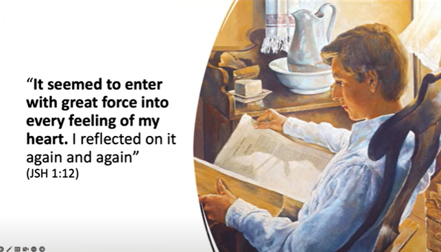 Like Joseph Smith, he had a question, he went to the scriptures, and he found his answer. And “It seemed to enter with great force into every feeling of my heart. I reflected on it again and again.”