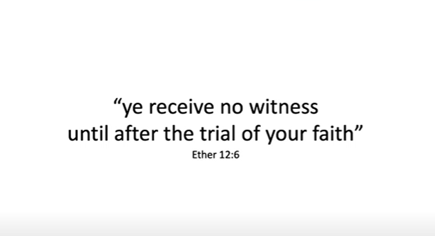 I learned something that day. I learned what the scripture says: “ye receive no witness until after the trial of your faith.” The Spirit does not confirm doubts. When we have doubts, we feel nothing. But when we have faith, the Spirit then can work and tell us it’s true.