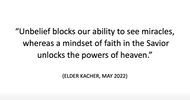Elder Kacher said, “Unbelief blocks our ability to see miracles, whereas a mindset of faith in the Savior unlocks the powers of heaven.” That’s true. So choose to wear the glasses of faith—it is a choice. You get to decide.