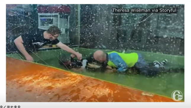 Everyone was panicking, but the man in the yellow shirt (who didn’t work there—he was just a birthday guest) jumped in to help. He got on the alligator, using his weight to stop it from rolling. She knew the alligator would try to grab more of her arm, so she stayed calm and waited for the right moment. When the alligator tried to get a better hold, she pulled her arm out, and the man outside pulled her to safety. The man in yellow, still on the alligator, was told how to get out, and within just a minute, he stepped right out. It was a miracle.