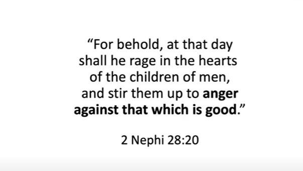 Satan also stirs us to anger; he wants us to contend with each other. He wants us to fight with each other, but he also wants to stir us to anger. When we start to have questions, he tempts us to feel pride and for those questions to become critical, like Laman and Lemuel murmuring. And then to take offense and even disgust.
