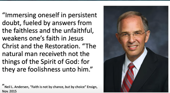 “Immersing oneself in persistent doubt, fueled by answers from the faithless and the unfaithful, weakens one’s faith in Jesus Christ and the Restoration.”