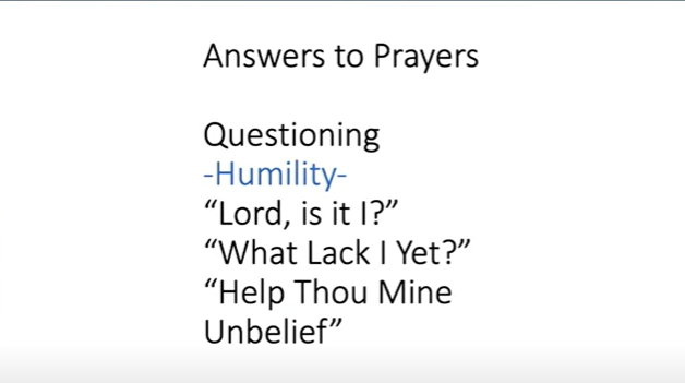 This is the pattern I have seen for myself: I need to back up. Go back to my initial questions, insert humility instead of pride, and, in humility, ask, “Lord, is it I? What am I doing? What lack I yet? What don’t I understand? Help Thou my unbelief.” That’s when He will give us answers, when we humbly ask, willing to let God prevail and willing to let Him teach us.