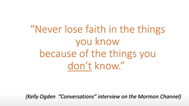 This is Kelly Ogden. He said: “Never lose faith in the things you know because of the things you don’t know.” We must remember that Satan would tell us to “walk away, walk away—it’s not worth it.”