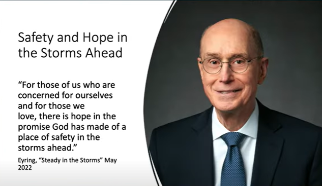 I’m grateful for all the words of comfort about such warnings. President Eyring said, “For those of us who are concerned for ourselves and for those we love, there is hope in the promise God has made of a place of safety in the storms ahead.”
