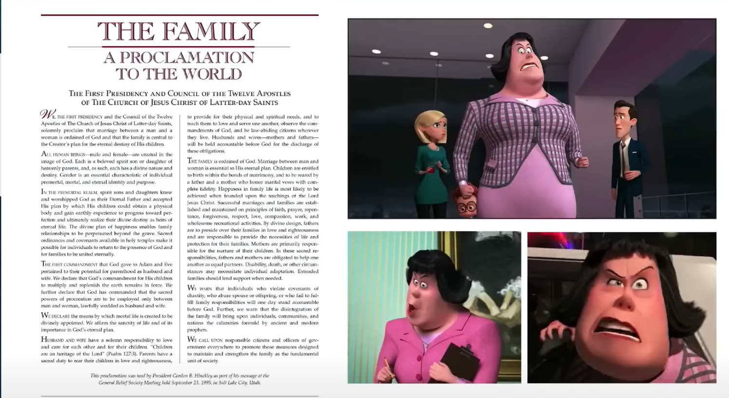 The line they grabbed—I wish I had a pointer—was from the very bottom of the Proclamation on the Family: