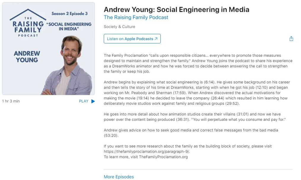 Scott Gordon: Our next speaker is well-positioned against our last speaker because we have Andrew Young, creator of DreamWorks movies, Microsoft Xbox video games, Project Veritas journalist, YouTube contributor, and Into the Verse Scripture Show. He’s Brigham Young’s great-great-grandson, Eagle Scout, married in the Diego Temple—15 years—and so we’re just going to turn the time right over to Andrew Young, who is going to start by showing a video.