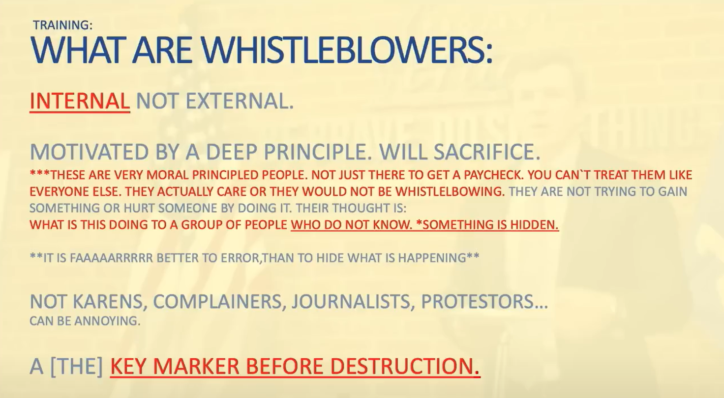 At the bottom, whistleblowers are a key marker before destruction.