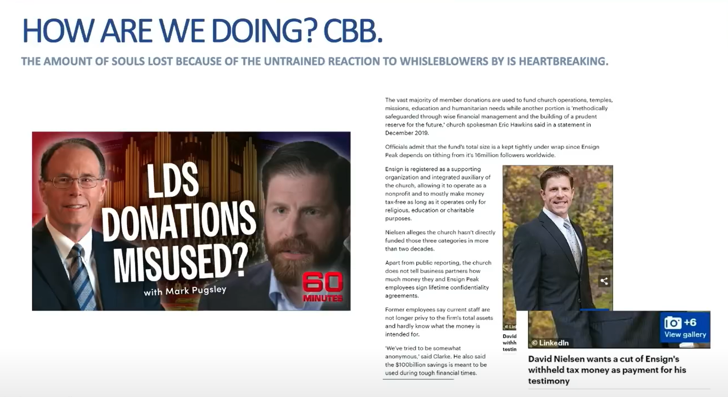 I’m going to go through this. I do think it will help the church, and I do think it will help all of us, if you understand how to deal with whistleblowers: why they come and what to do about them.