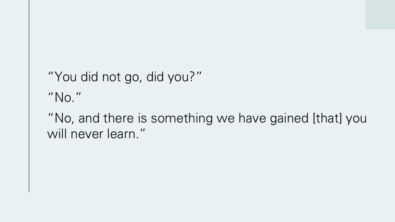 When they returned without fighting and without restoring the Missouri Saints to their lands, many considered the venture a failure. Brigham Young later related a conversation he had with one such person: