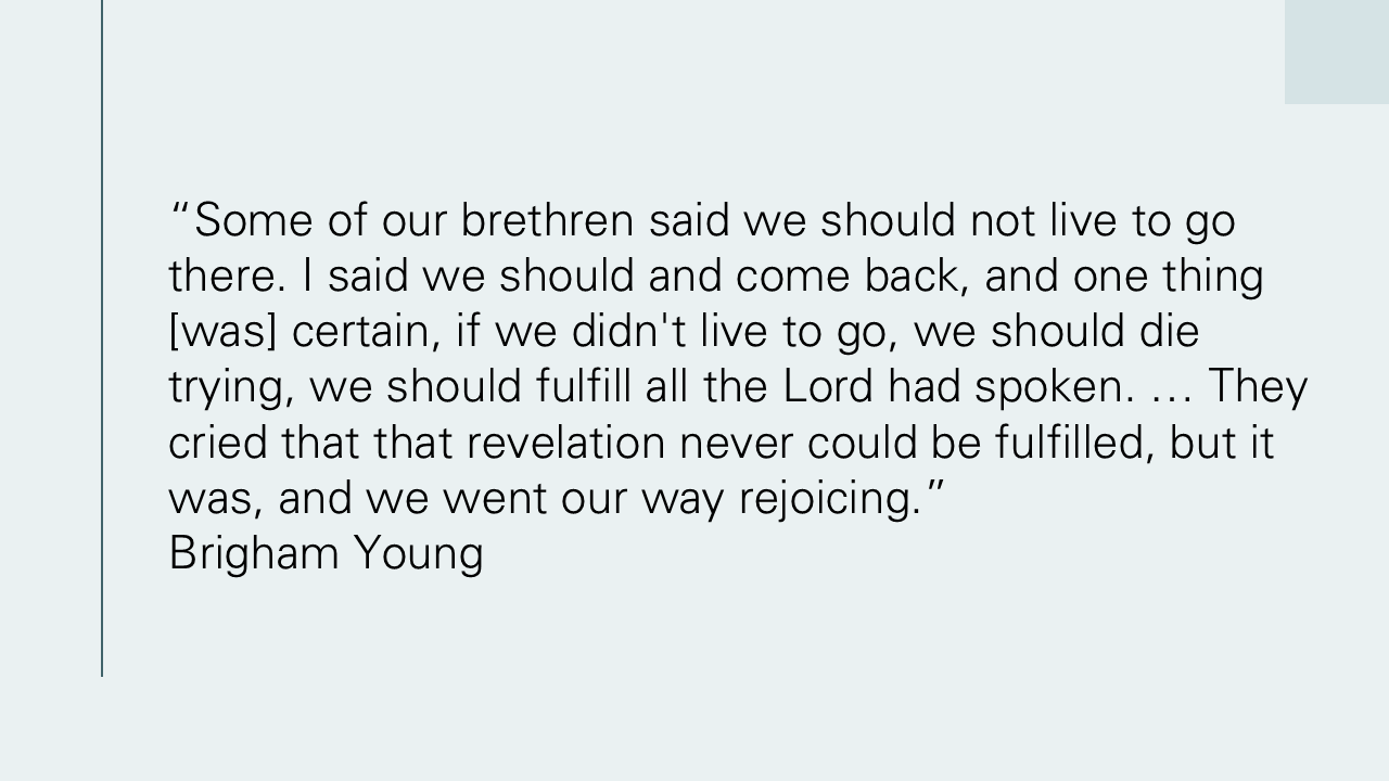 I said we should and come back, and one thing [was] certain, if we didn’t live to go, we should die trying, we should fulfill all the Lord had spoken.
