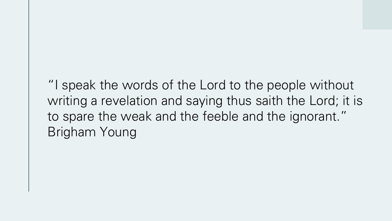 I speak the words of the Lord to the people without writing a revelation and saying thus saith the Lord; it is to spare the weak and the feeble and the ignorant.”