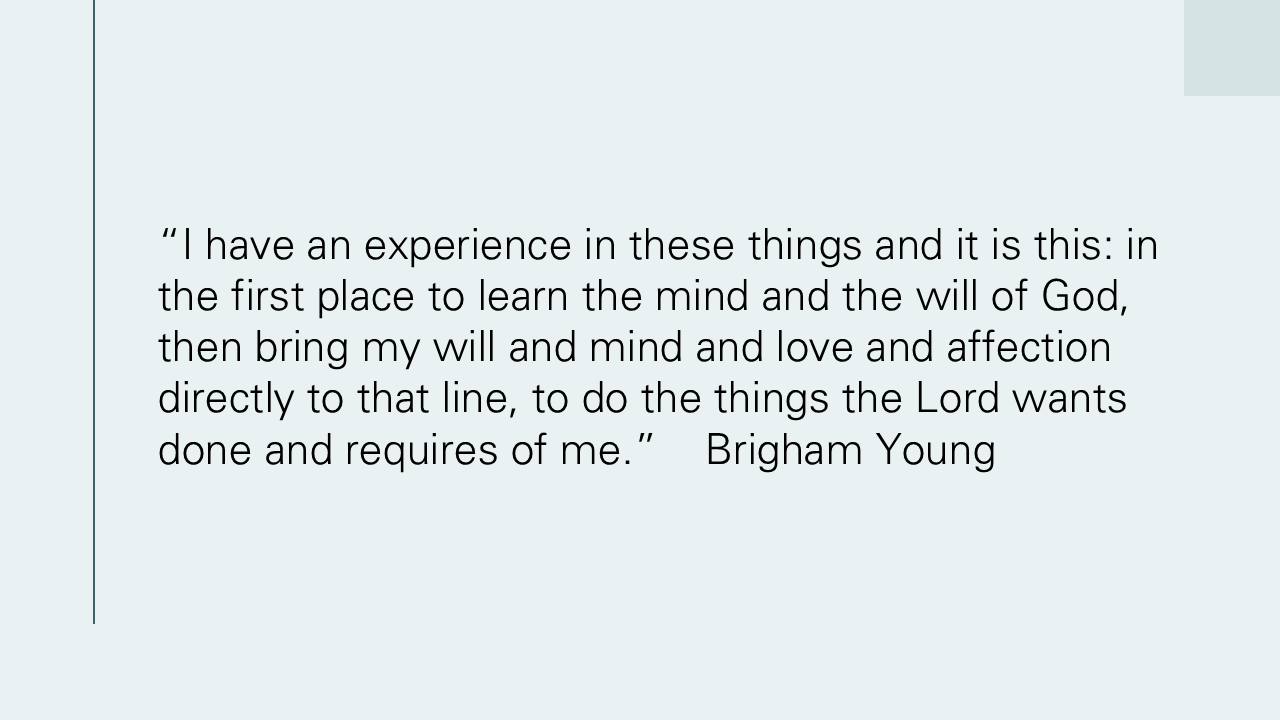 I have an experience in these things and it is this: in the first place to learn the mind and the will of God, then bring my will and mind and love and affection directly to that line, to do the things the Lord wants done and requires of me. That is what I wish to do. I wish to do nothing else but the will of God. …