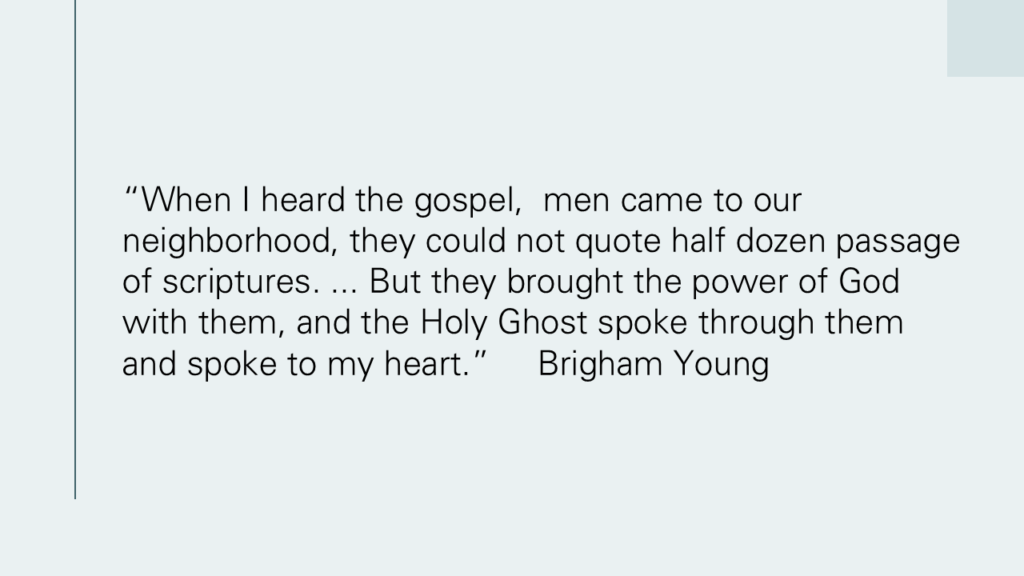 Brigham Young’s testimony of Joseph Smith is a recurring theme in the talk. He spoke of his initial skepticism and how he gained a firm, personal witness of Joseph Smith’s divine calling through observation and revelation. His unwavering support for Joseph Smith highlights the continuity of prophetic authority and the legitimacy of Joseph’s revelations, reinforcing the importance of prophets in the Church.