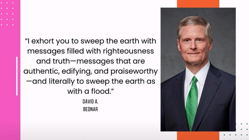 Becky cites direct invitations from Elder Ballard, Elder Bednar, and Elder Stevenson to participate in gospel-sharing online. By grounding her message in prophetic calls, she validates digital missionary work as an inspired and necessary part of modern discipleship, not merely a cultural trend or optional hobby.