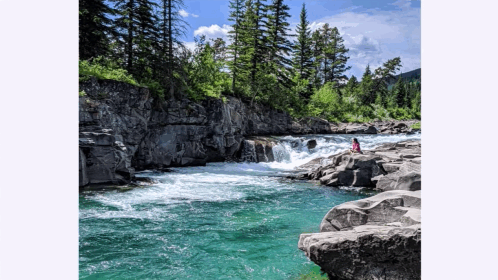 We spent the day jumping into the river, and when doing so, we would jump off the rock ledge and then we’d have to—as soon as we surfaced—we’d have to quickly swim to the shore because the current was quite strong and would take us away. And it was also pretty frigid ice water. So we wanted to get out of the water as quickly as we could.